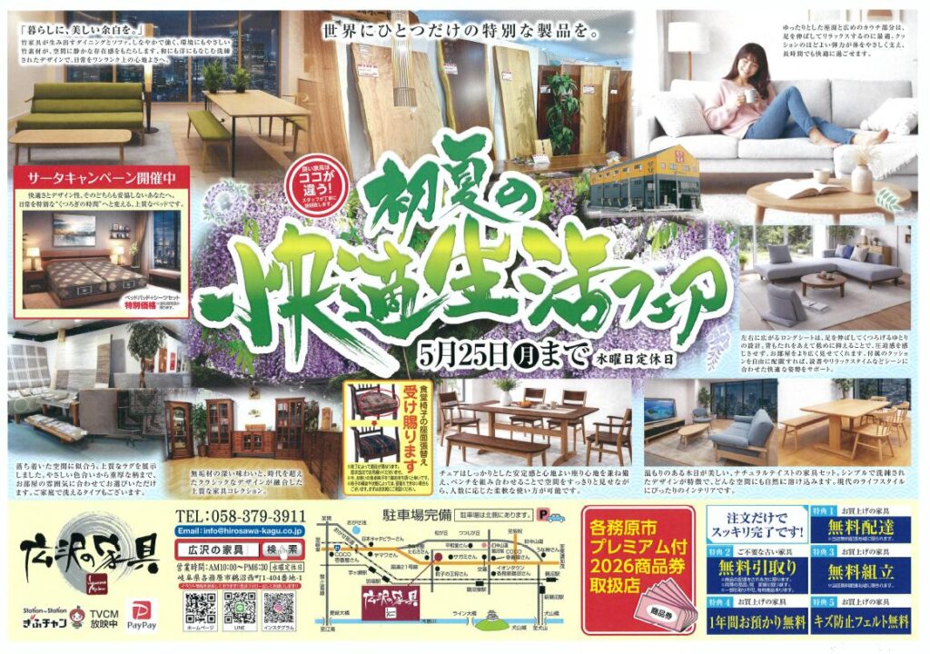 広沢の家具では、 2026年 5月25日(月)まで